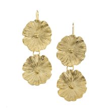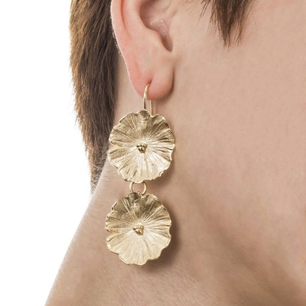 Aros de plata 925 hechos a mano, compuestos por un sistema de eslabones y dos flores talladas. Lo podes elegir en su versión de Bronce bañado en oro.