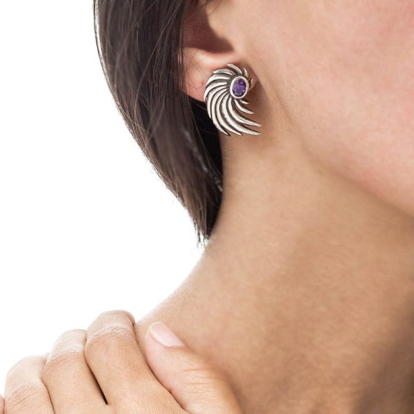 Supersónicas, y cancheras, aros de plata 925 hechos a mano, lleva una piedra amatista engarzada.