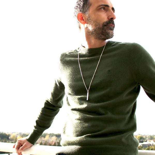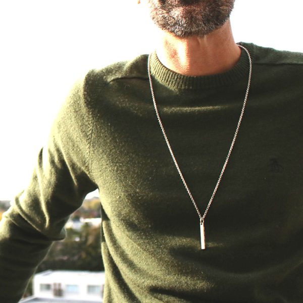 Plaquita rectangular de plata 925, hecha a mano. Podes grabar máximo 5 caracteres en cada lado. Podes llevarte el dije solo o con una cadena tipo rolo de 70 cm o 55 cm. Es 1 cm más grande que el dije familia de mujer.