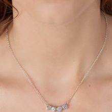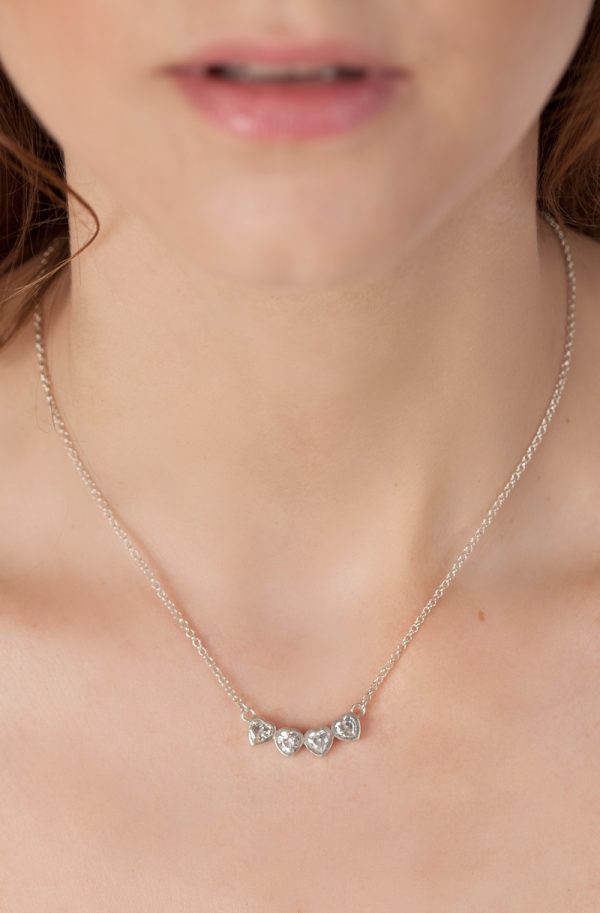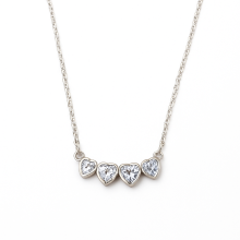 Collar con cuatro corazones unidos, hechos de plata 925, engarzados con cubic blanco. Largo del collar 40 cm.